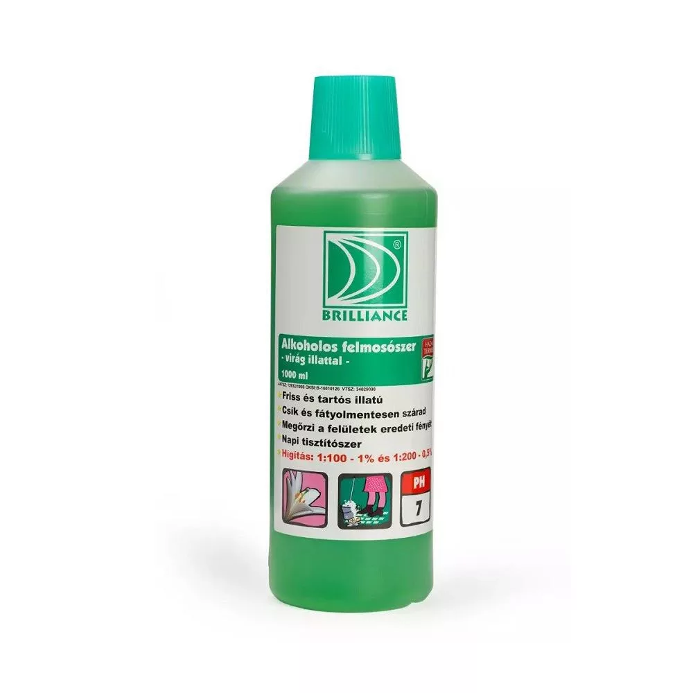 Brilliance® Alkoholos felmosó virág illattal 1 liter egy sokoldalú tisztítószer, amelyet különféle felületek hatékony tisztítására és fertőtlenítésére terveztek, és kellemes virágillatot hagy maga után. Az ilyen típusú tisztítószerek különösen hasznosak a háztartásokban és munkahelyeken, ahol a higiénia és a friss illat egyaránt fontos.