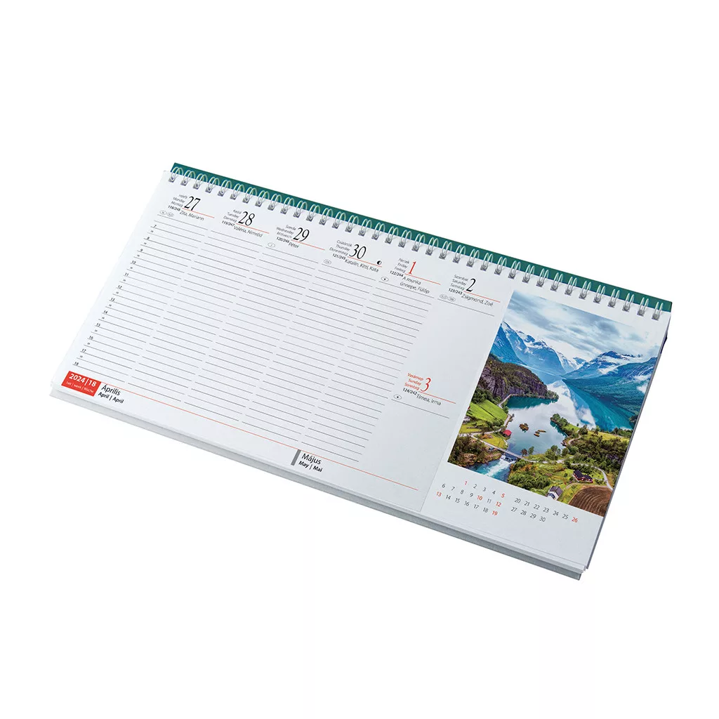 Méret: 320mm x 155mm, fekvő formátumban, amely szélesebb látóteret biztosít, így kényelmesen elhelyezhetők rajta a napi jegyzetek és események.