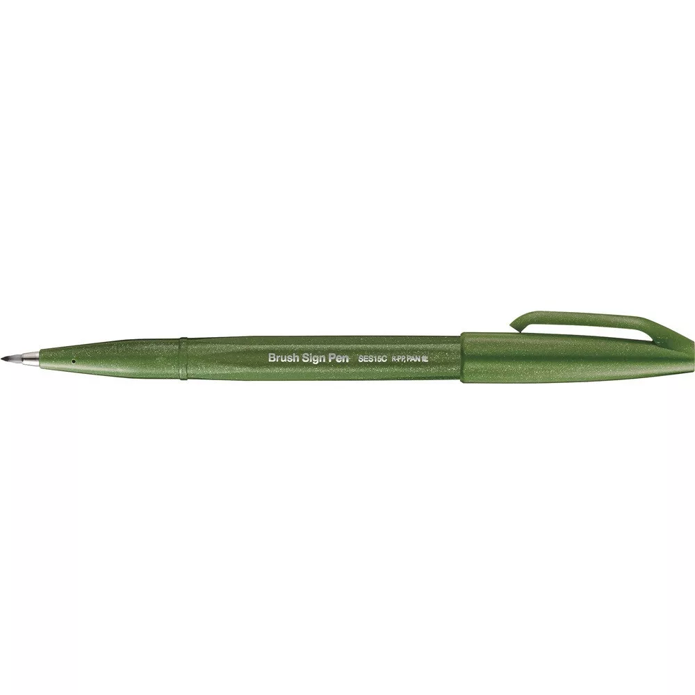 Ecsettoll kalligrafikus hajlékony hegyű SES15C-D2X Pentel Brush Sign Pen olivazöld