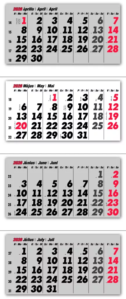 - Kötés: A három részes speditőr naptárak tömbjei fejben ragasztott megoldással készülnek, így könnyebb eltávolítani az elmúlt hónapok lapjait