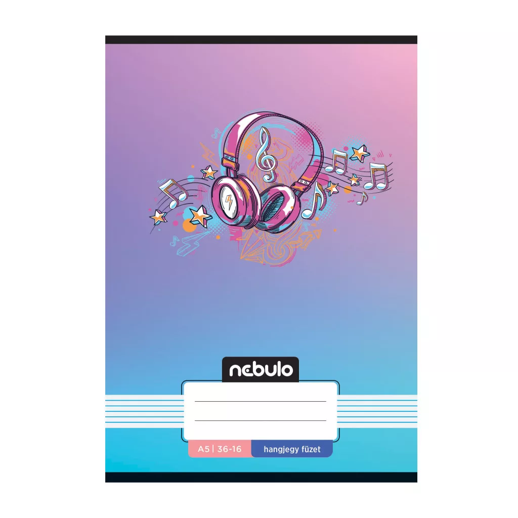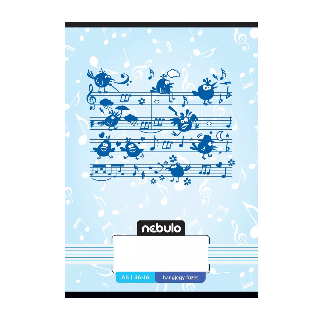 A/5-ös tűzött iskolai hangjegy füzet, 16 lapos (36-16). 16 db füzet (2 különböző minta, azaz 8 db/minta) van egy csomagban. 70 g-os füzetlapok és 200 g-os műnyomó borító fényes fóliával.