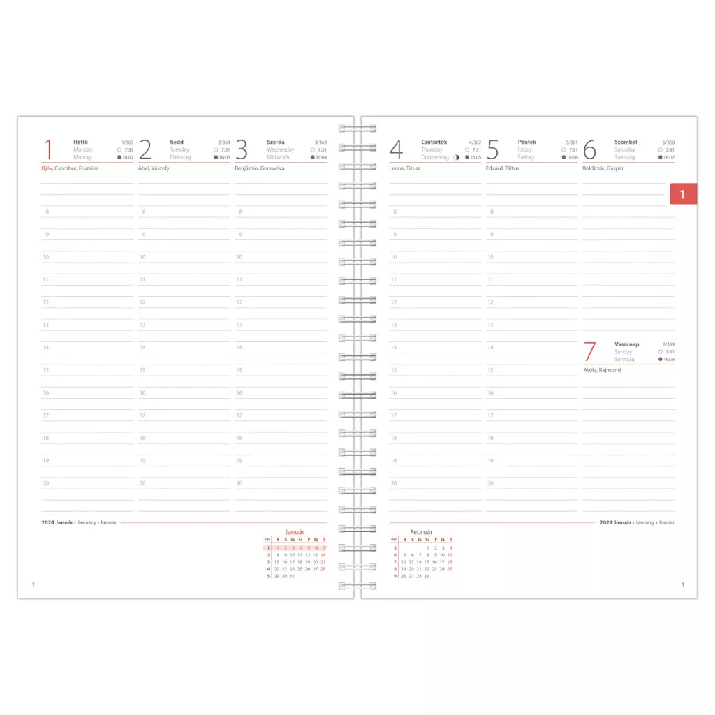 Naptár beosztás: heti (1 hét 2 oldalon)