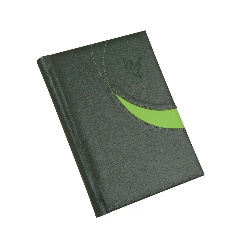 Határidőnapló Prémium M A/5, napi krémszínű lapokkal zöld Realsystem 2024.
