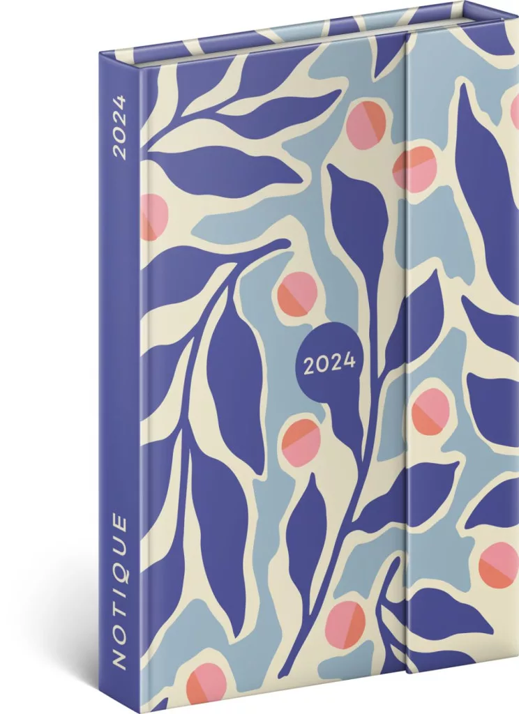 Határidőnapló mágnessel záródó, krémszínű lapokkal Leaves 110×160 mm, Realsystem 2024.