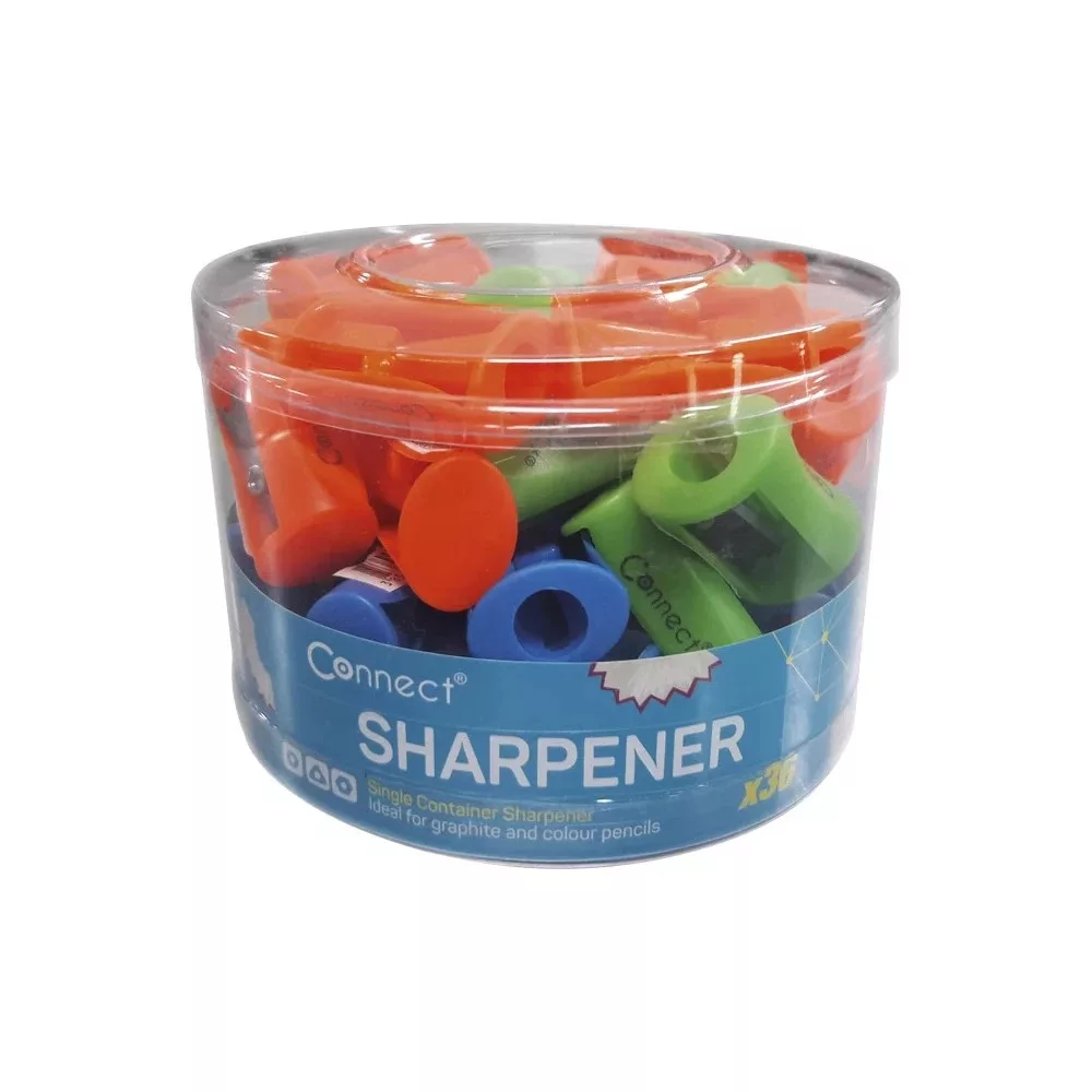Hegyező műanyag 1 lyukú 36 db / bliszter PVC; 4 szín: narancs, kék, rózsaszín és zöld; műanyag dobozban