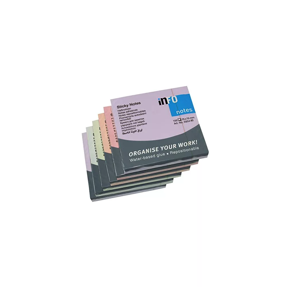 Jegyzettömb GLN öntapadós, 75x75 mm, 100 lap, HARMONY, 6db/csomag (lila, sárga, zöld, kék, barack, rózsa )