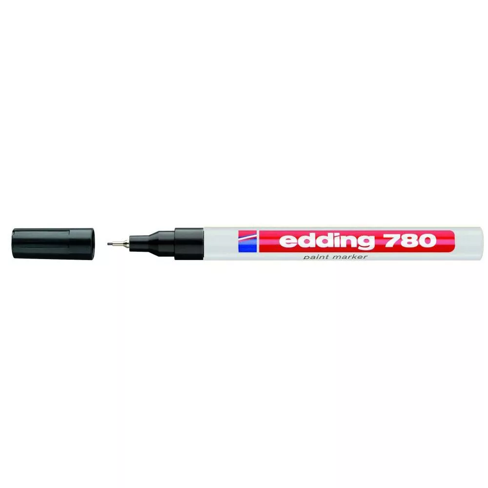 Üveg, porcelán, műanyag, fém illetve szinte minden felület feliratozására, jelölésére alkalmas. különösen ajánlott szennyezett felületekhez, lakk- és dekorációs fémtestű marker. Kerekített csúcs, fémtest, permanent, lakkszerűen fedő festékkel töltve. Gyorsan száradó festék, írásképe törlés- és vízálló, magas fény- hő- és törlésálló. Festékadagolása egyenletes, szelep vezérli, pótcsúcsolható (EDDDING 780 N írócsúcs). Vonalvastagság: 0,8 mm. 10db/dob Katalóguskód: 1254