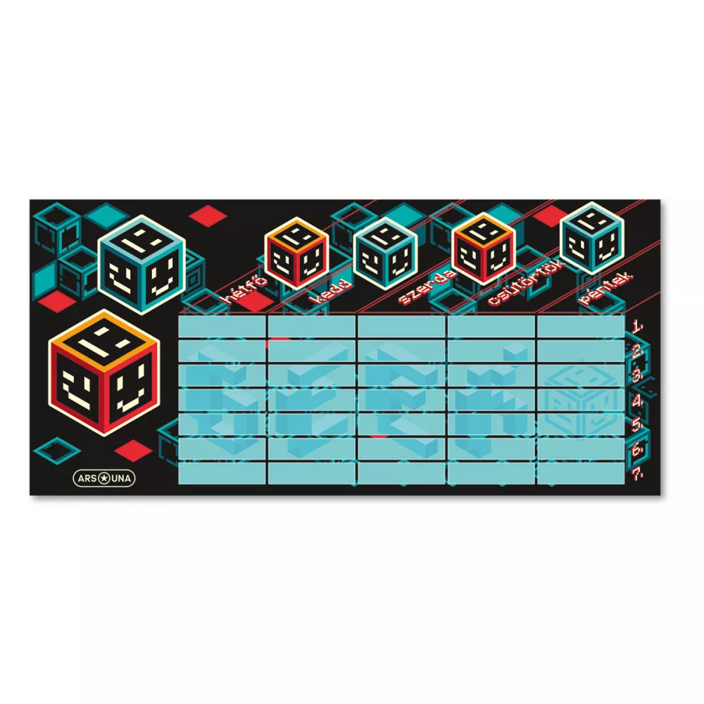 Kétoldalas, magyar nyelvű órarend A és B hét beosztással. 250 gr-os félfényes műnyomó papírra, 4 szín nyomással nyomott.