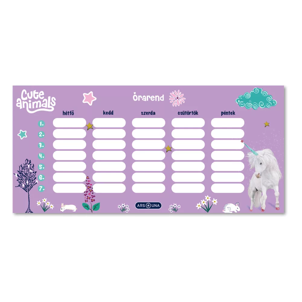 Órarend egylapos lányos, Ars Una UNICORN 25db/csomag