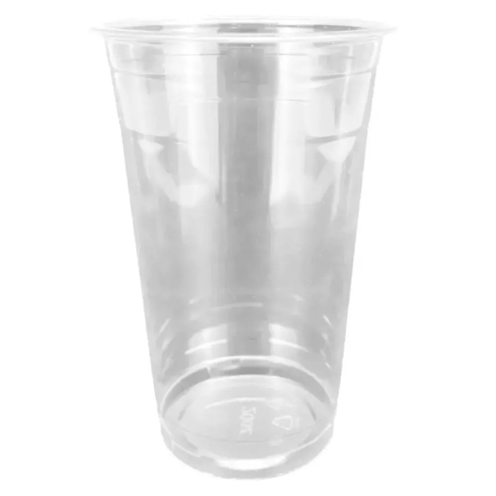 Víztiszta, műanyag pohár, amelyet turmixok, gyümölcssaláták, hidegitalok és pohárkrémek számára alkalmas.