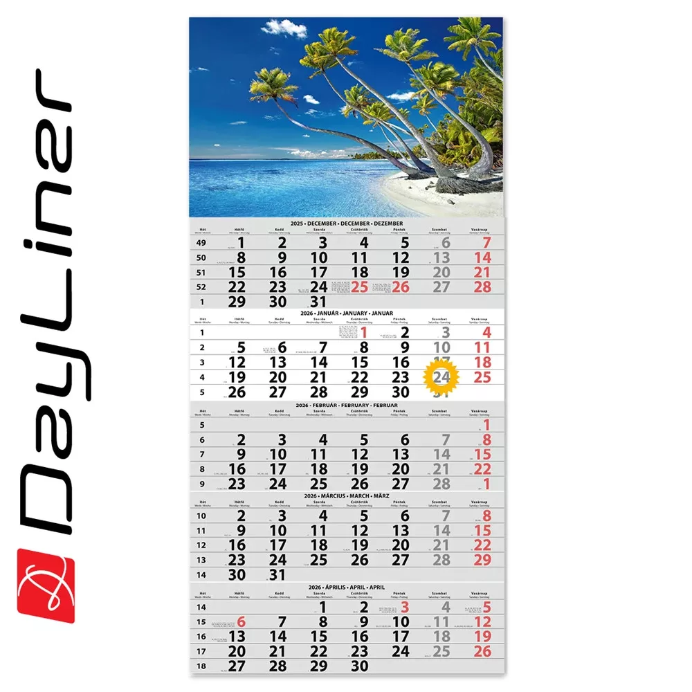 - Összesített naptár: Nem, ez a naptár nem tartalmaz összesített nézetet.