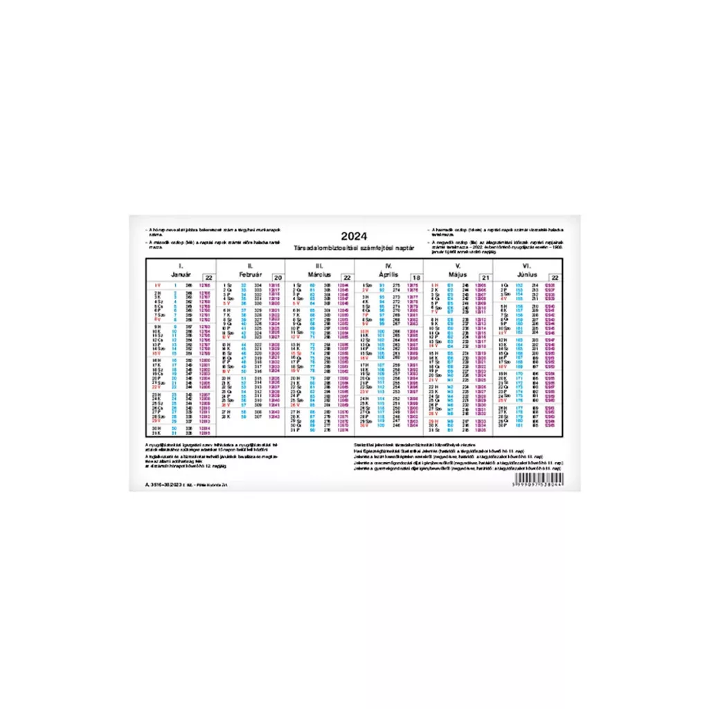 2022. évi számfejtési naptár