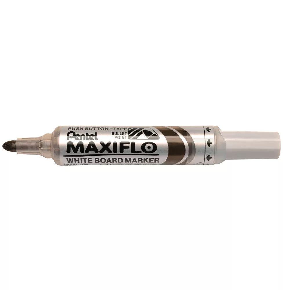 Professzionális társ a konferenciateremben, tanteremben. A Pentel Maxiflo táblafilccel nem lehet kizökkenni az írásból. A pumpás megoldással kivédheti a gravitáció hatását, akár fejjel lefelé is írhat. Csak nyomja meg a marker végében található gombot és írjon háromszor tovább, mint egy átlagos táblafilccel. Messziről is jól látható, 8 életteli színben kapható. 50%-ban újrahasznosított anyagokból készült. tinta ablakos, pumpás adagolórendszerrel, melynek köszönhetően a teljes tinta mennyiség kiírható a markerből. Extra hosszú íráshossz: 1100m 2,5 mmvonalvastagság Katalóguskód: 32564