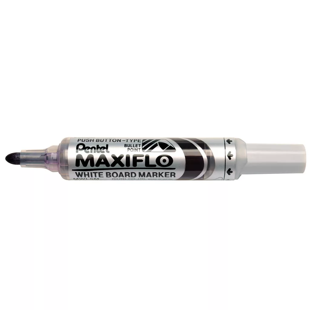 Professzionális társ a konferenciateremben, tanteremben. A Pentel Maxiflo táblafilccel nem lehet kizökkenni az írásból. A pumpás megoldással kivédheti a gravitáció hatását, akár fejjel lefelé is írhat. Csak nyomja meg a marker végében található gombot és írjon háromszor tovább, mint egy átlagos táblafilccel. Messziről is jól látható, 3 életteli színben kapható. 50%-ban újrahasznosított anyagokból készült. tinta ablakos, pumpás adagolórendszerrel, melynek köszönhetően a teljes tinta mennyiség kiírható a markerből. Extra hosszú íráshossz: 1100m 2,5 mmvonalvastagság Katalóguskód: 27684