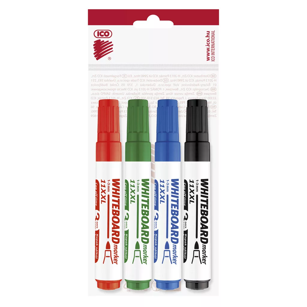 Fehér táblára való írásra, rajzolásra alkalmas marker."Cap-off" festékkel töltve, ezért néhány napig kupak nélkül sem szárad be. Az írás szárazon letörölhető. Megnövelt élettartam a nagyobb méretű testnek köszönhetően. Kerekített csúccsal .. Vonalvastagság: 3 mm. 15 KLT/DOBOZ Katalóguskód: 20194