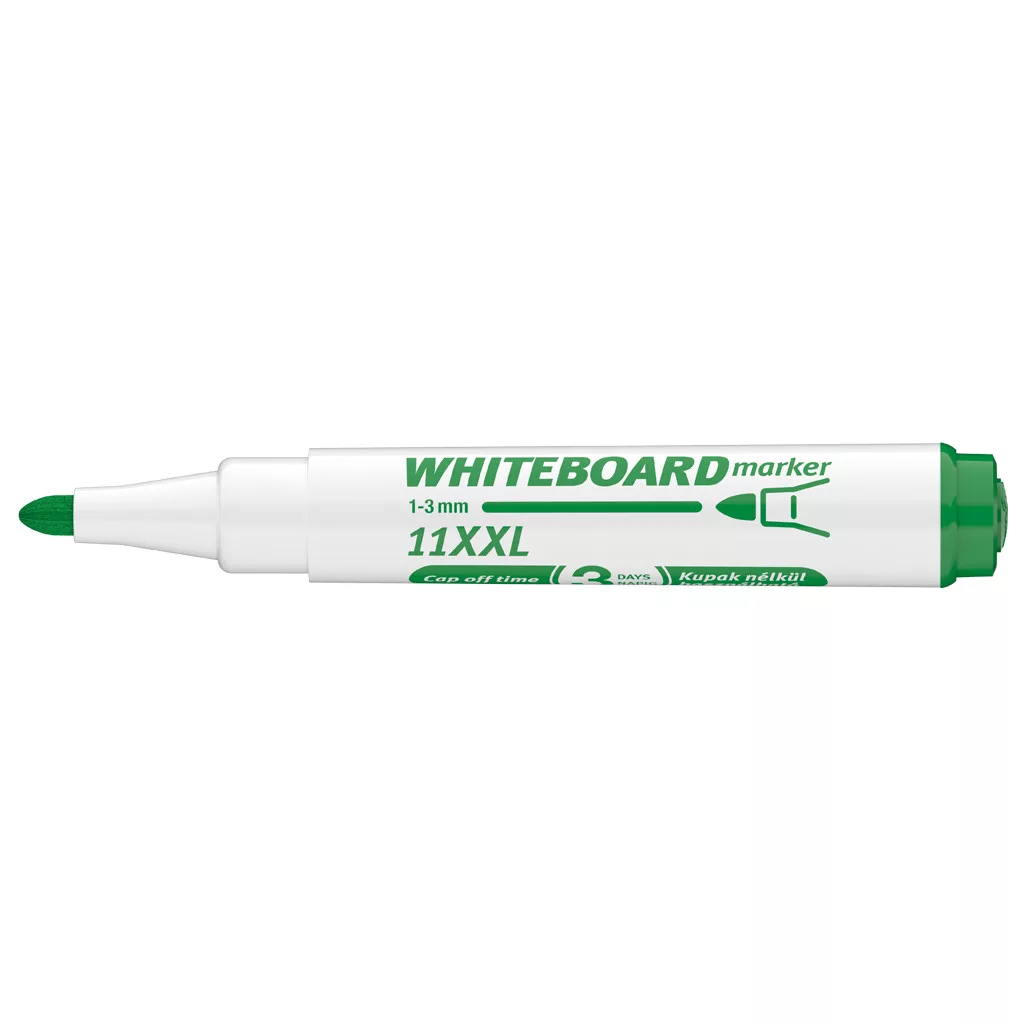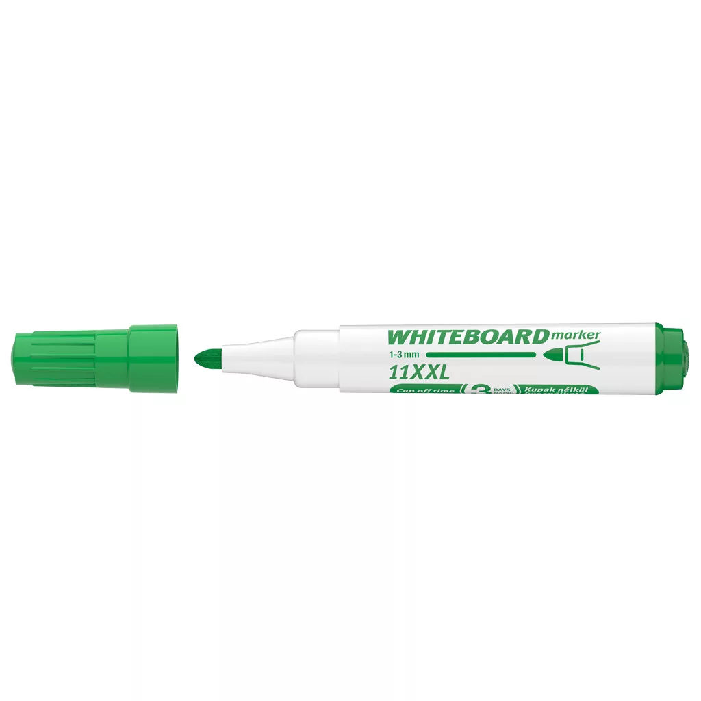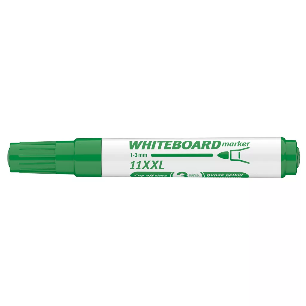 Fehér táblára való írásra, rajzolásra alkalmas marker."Cap-off" festékkel töltve, ezért néhány napig kupak nélkül sem szárad be. Az írás szárazon letörölhető. Megnövelt élettartam a nagyobb méretű testnek köszönhetően. Kerekített csúccsal .. Vonalvastagság: 3 mm. 10DB/DOBOZ Katalóguskód: 20193