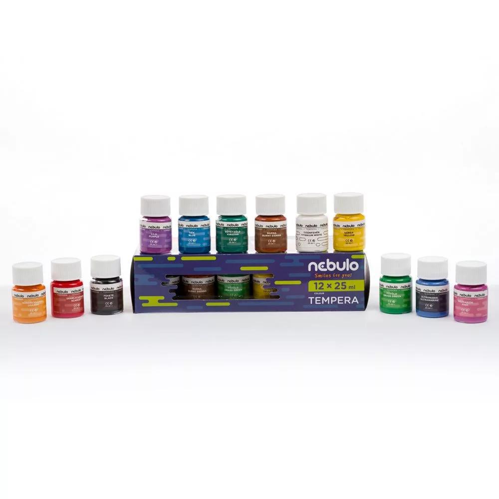 Ragyogó, élénk színekkel rendelkező tempera készlet praktikus, jól záró műanyag tégelyben. Könnyen keverhető és egyenletesen fed. Katalóguskód: 27184