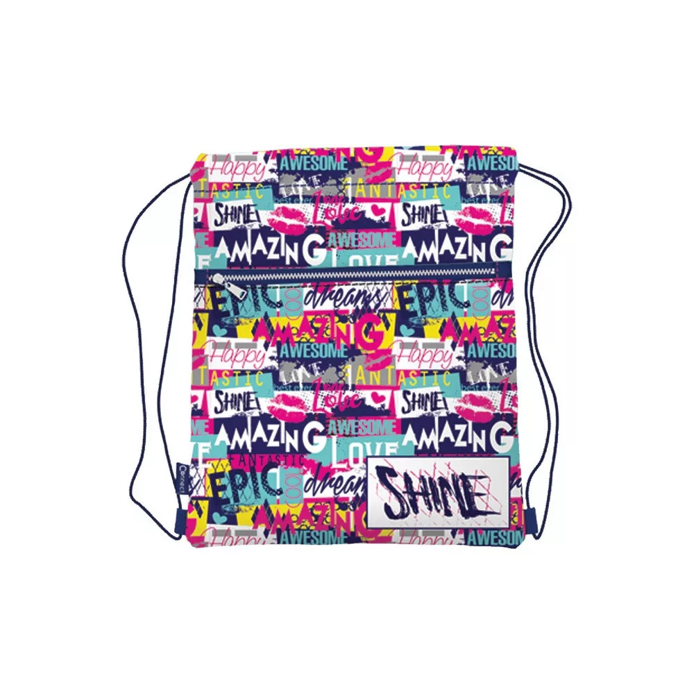 Tornazsák méret:29x39x2 cm, elől cipzáros zseb. Katalóguskód: 32374