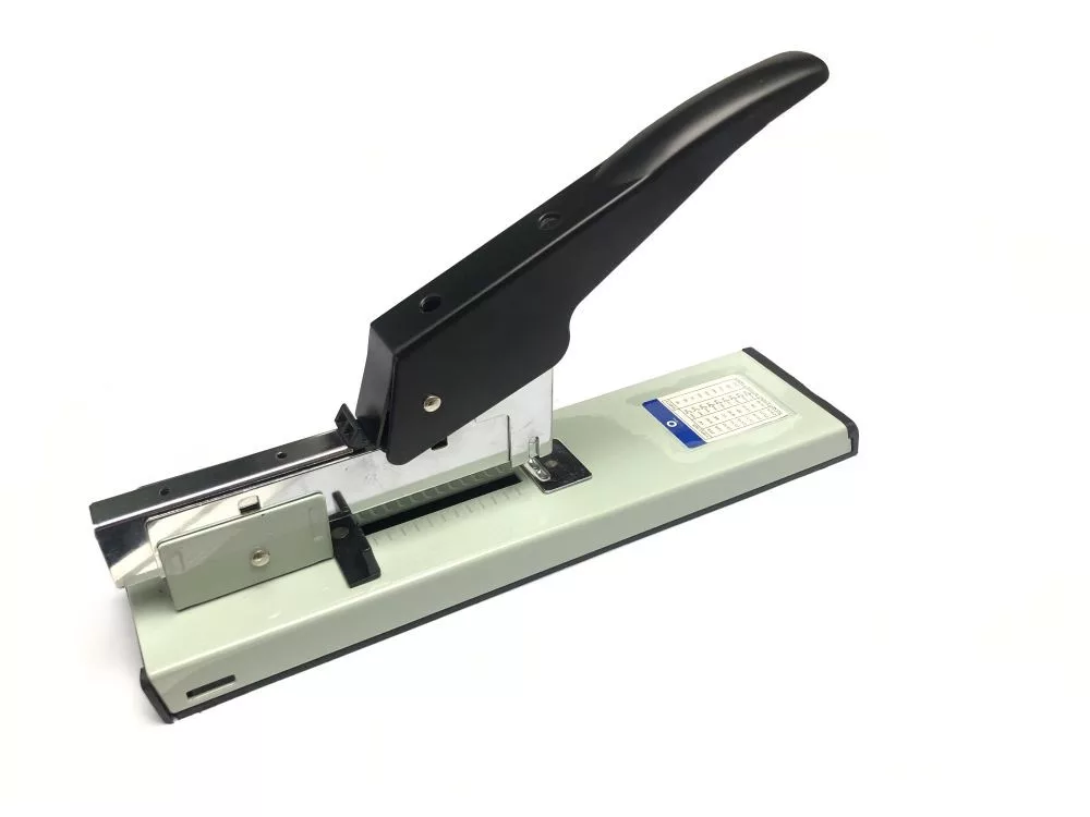 Nagy teljesítményű, karos, fém tűzőgép. Elöltöltős, állítható fűzési mélység 70mm-ig. Csúszásgátló talp biztosítja a stabil használatot. 23/6 -23/13, 23/14 tűzőkapcsokhoz. Lapkapacitás: 100 lap Katalóguskód: 13662