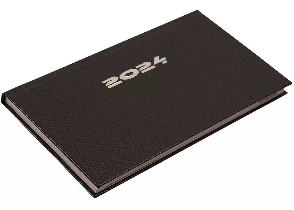 Zsebnaptár fekvő Carbon, fehér lapokkal acél Realsystem 2024.