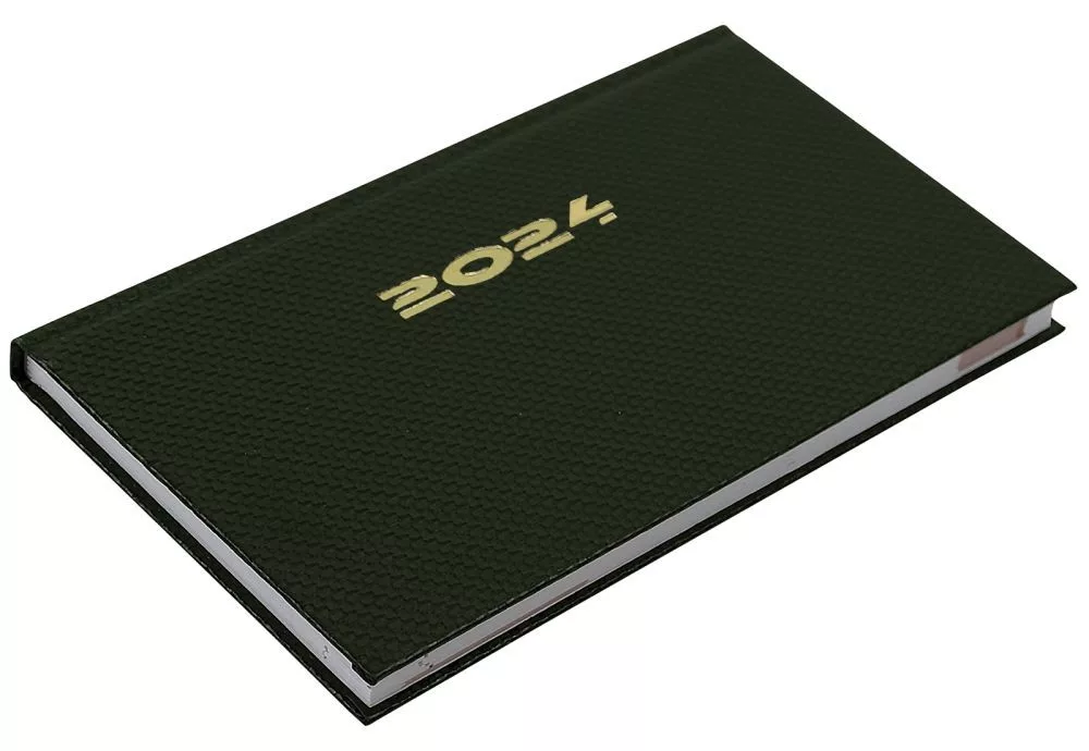 Zsebnaptár fekvő Carbon, fehér lapokkal zöld Realsystem 2024.